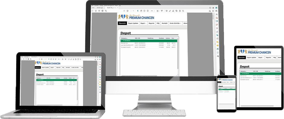 In Premium Opportunities , a comprehensive approach is taken across the capital market, encompassing various trading instruments such as stocks, ETFs, and leverage certificates. Focus is placed on the NextGeneration portfolio, particularly within the technology and growth sectors. Additionally, a conservative 7% dividend portfolio is available.Â