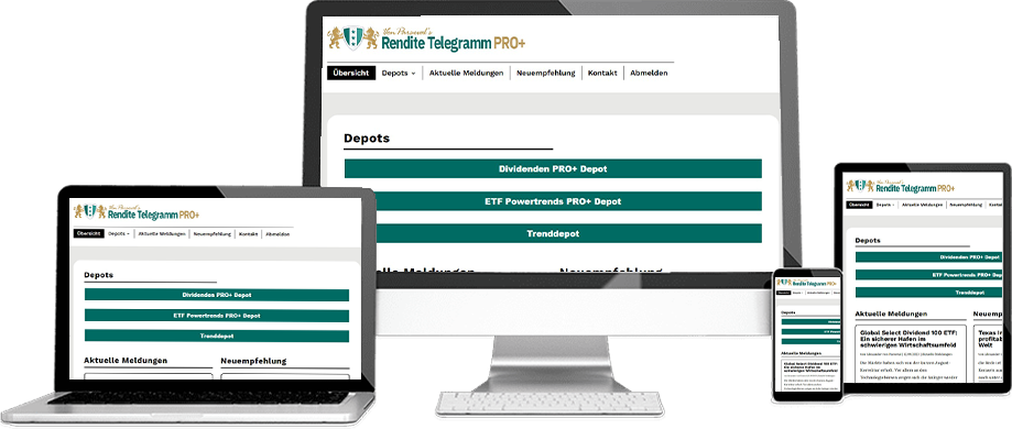 Alexander von Parseval enhances the value of RENDITE TELEGRAM PRO with the ProPlus variant. This includes the Dividend ProPlus portfolio and the ETF Powertrends portfolio, offering advantages like dividend growth and portfolio diversification with industry ETFs. Ideal for long-term investors seeking security.